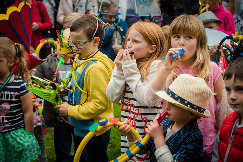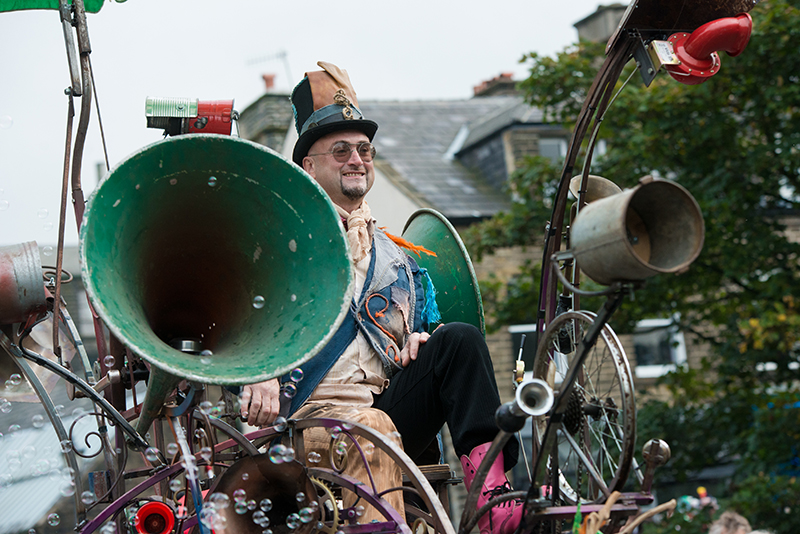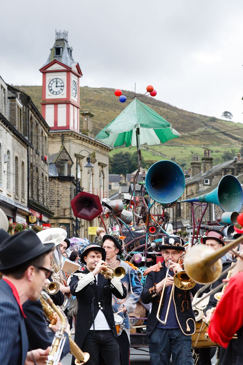 Jazz bands, magical musical contraptions, dancers and festival visitors join the fun as the parade winds its way along Peel Street through the centre of the village.