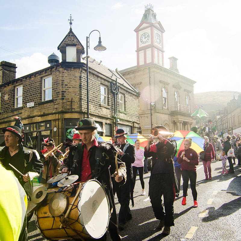 The Marsden Jazz Festival parade takes over Peel Street with a colourful show